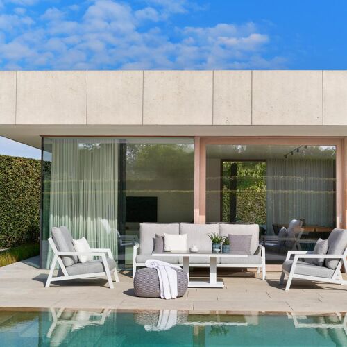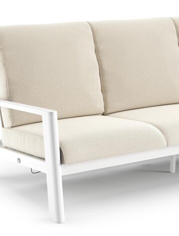 Canapé de jardin Cirello en aluminium blanc et coussins en all weather cosytica althea off white | Exterioo