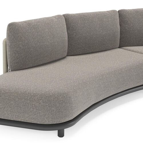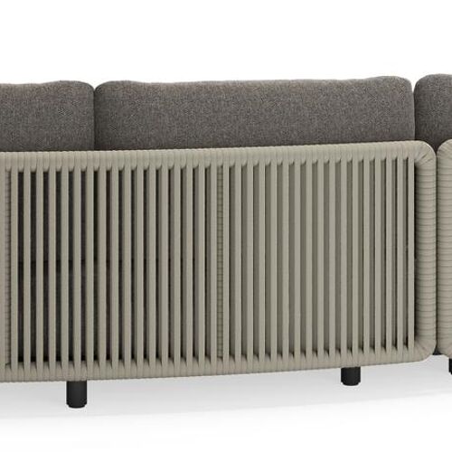 Canapé de jardin Lomano en aluminium noir et corde luxe plate tissée verticalement beige et coussins en all weather sunbrella® luxe Chartres Drizzle | Exterioo