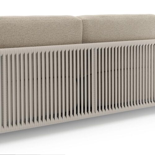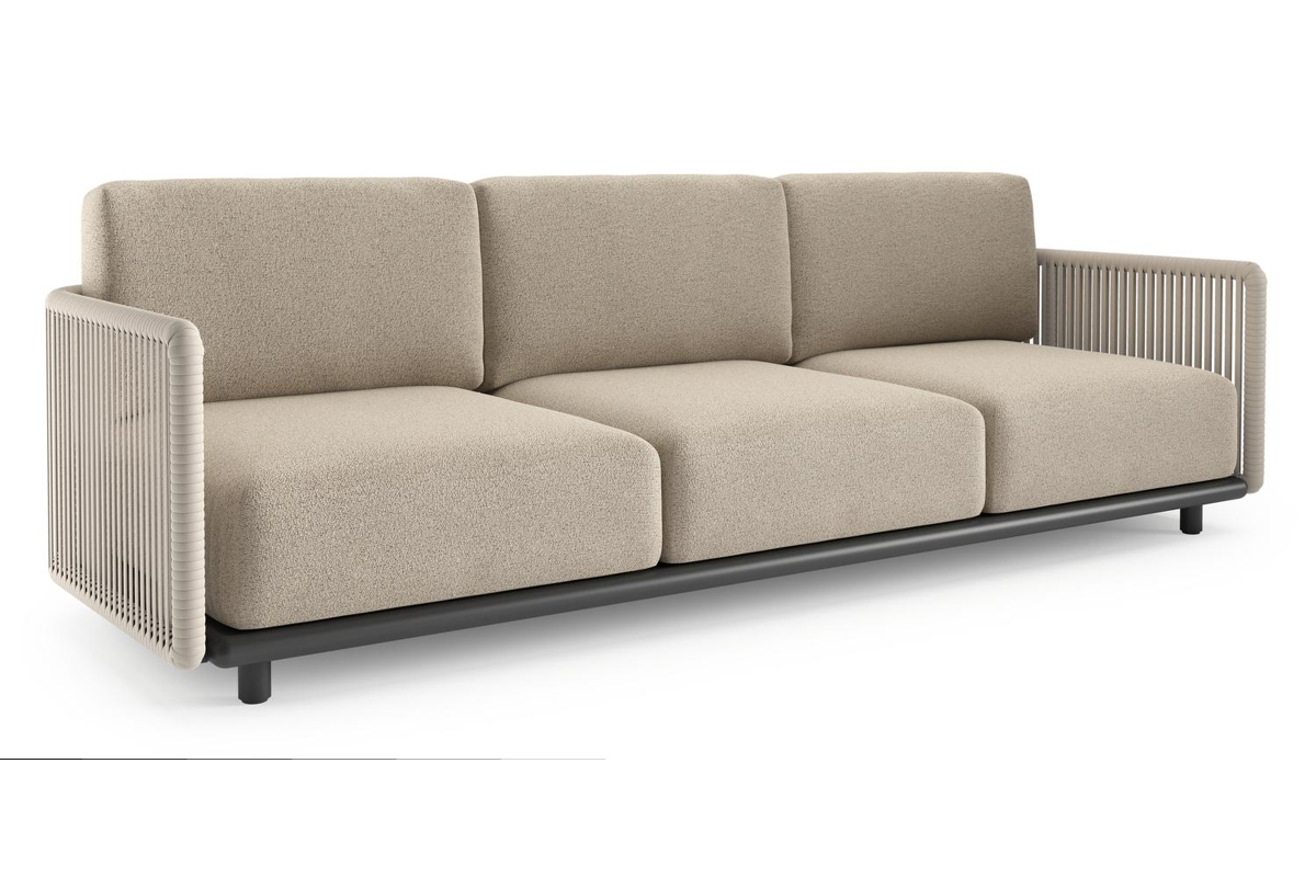 Organo loungebank 3-zit in zwart aluminium en beige verticaal geweven luxe vlakke rope met marbella beige All Weather Cosytica kussen | Exterioo