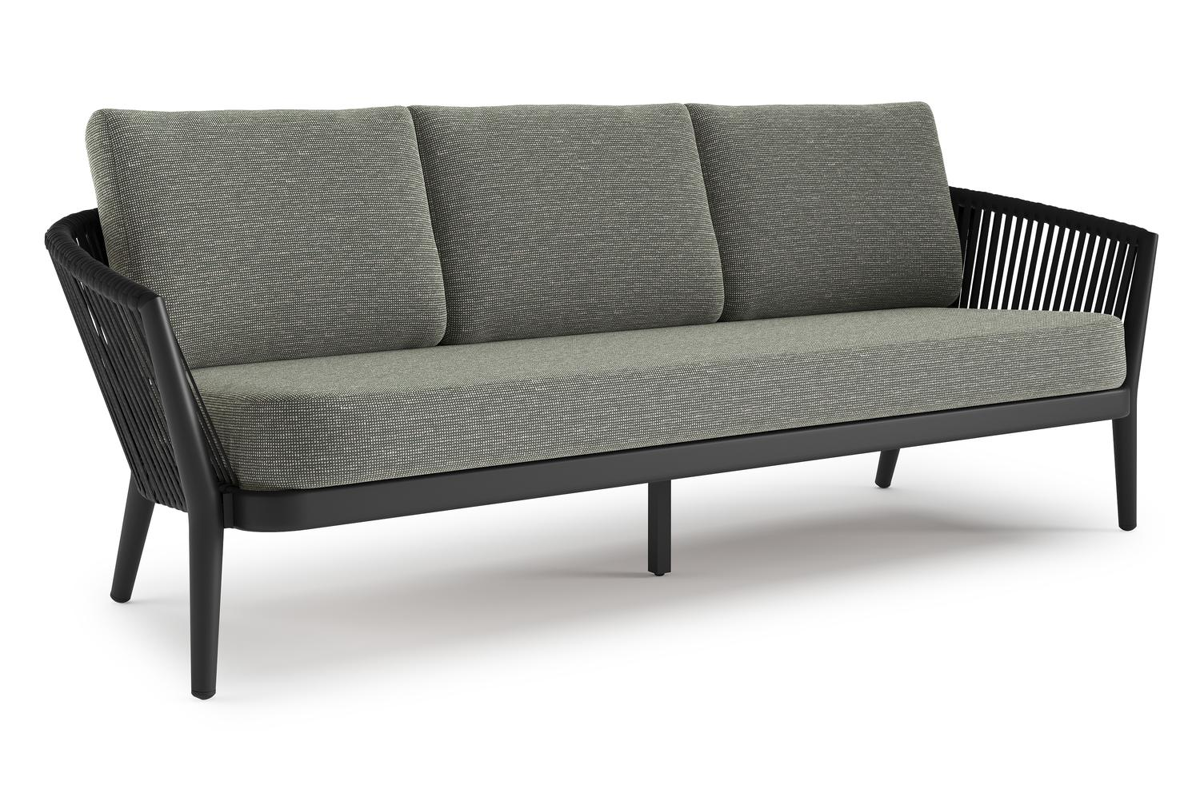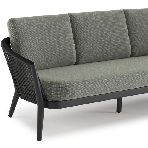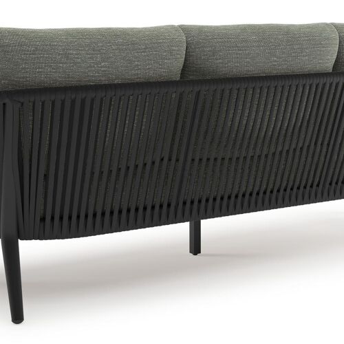 Canapé de jardin Orso en aluminium noir en corde ronde tissée verticalement noir et coussins en all weather sunbrella® luxe Slow Fern | Exterioo