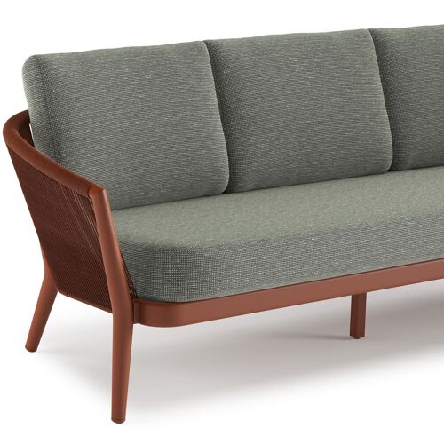 Canapé de jardin Orso en aluminium brun rouille en corde ronde tissée verticalement brun rouille et coussins en all weather sunbrella® luxe Slow Fern | Exterioo