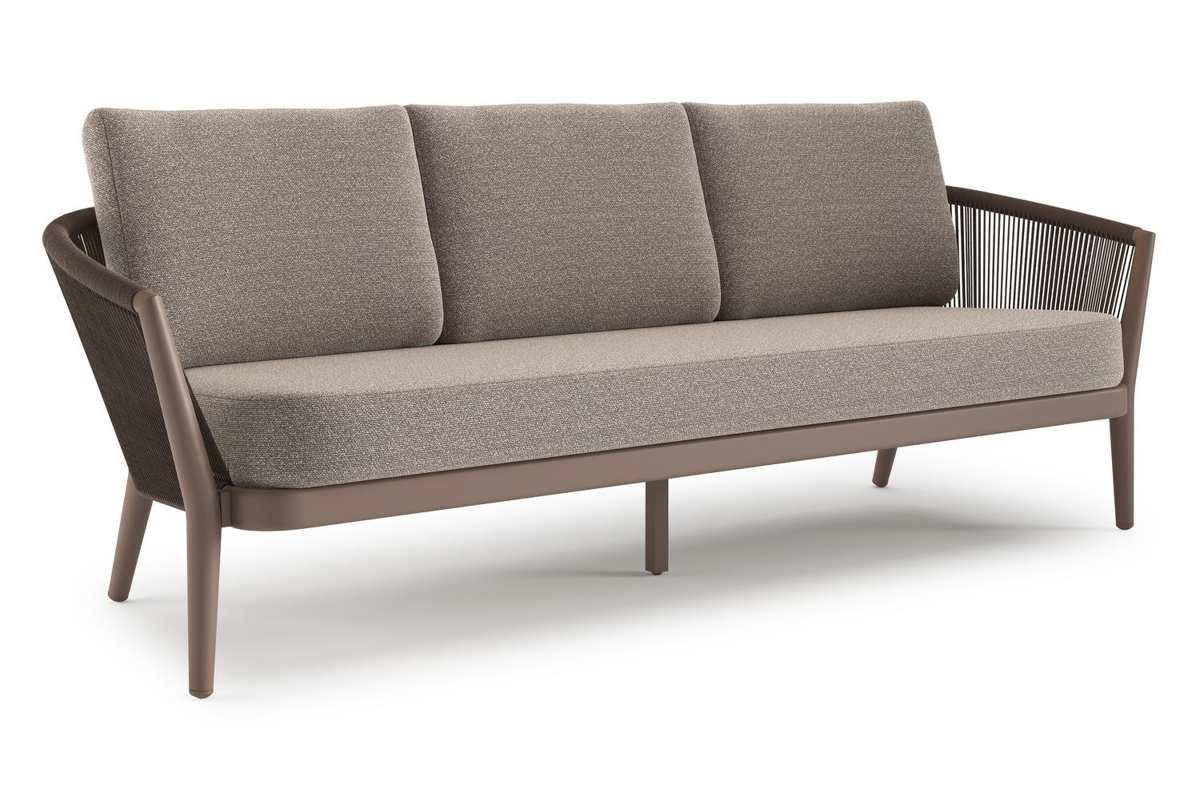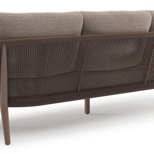 Canapé de jardin Orso en aluminium taupe en corde ronde tissée verticalement noir et coussins en all weather sunbrella® luxe Wander Manioc | Exterioo