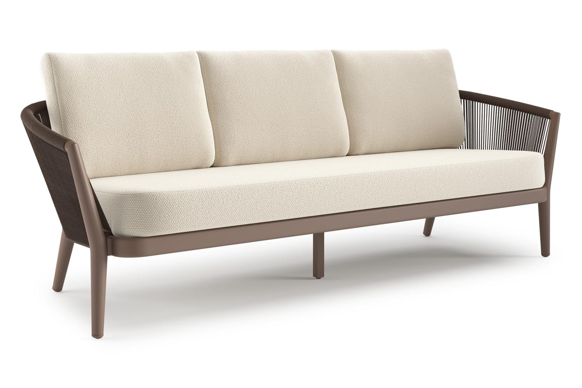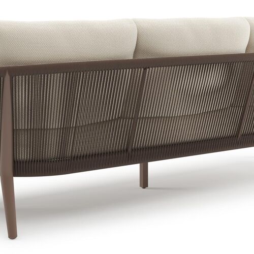 Canapé de jardin Orso en aluminium taupe en corde ronde tissée verticalement noir et coussins en all weather cosytica Althea Off White | Exterioo