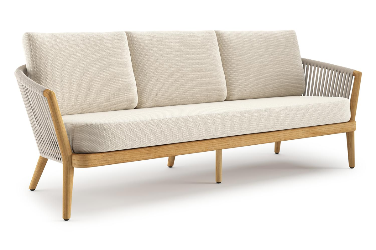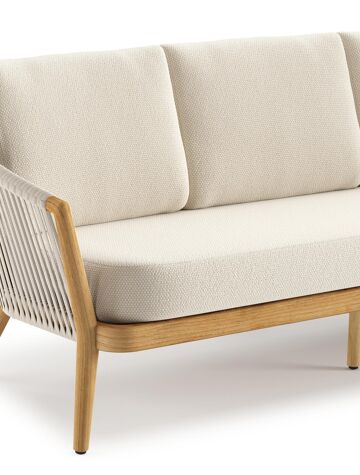 Canapé de jardin Orso en tecken corde luxe plate tissée verticalement beige et coussins en all weather cosytica Althea Off White | Exterioo