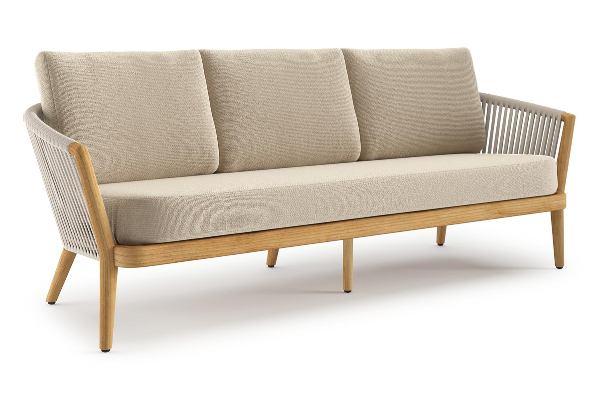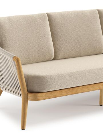 Canapé de jardin Orso en tecken corde luxe plate tissée verticalement beige et coussins en all weather cosytica Althea Chalk | Exterioo