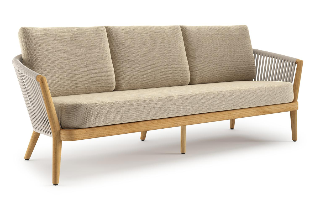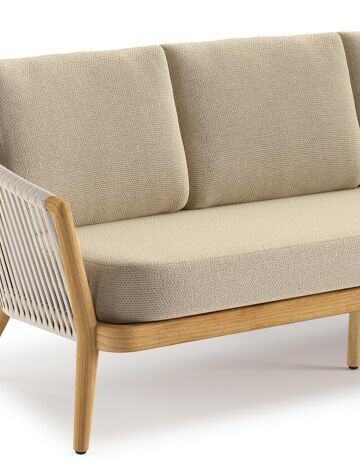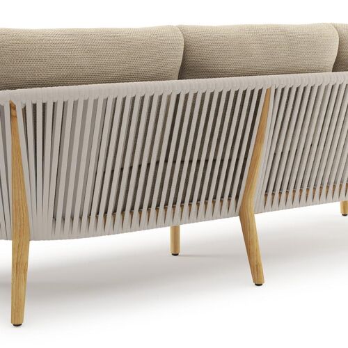 Canapé de jardin Orso en tecken corde luxe plate tissée verticalement beige et coussins en all weather cosytica Althea Camel | Exterioo