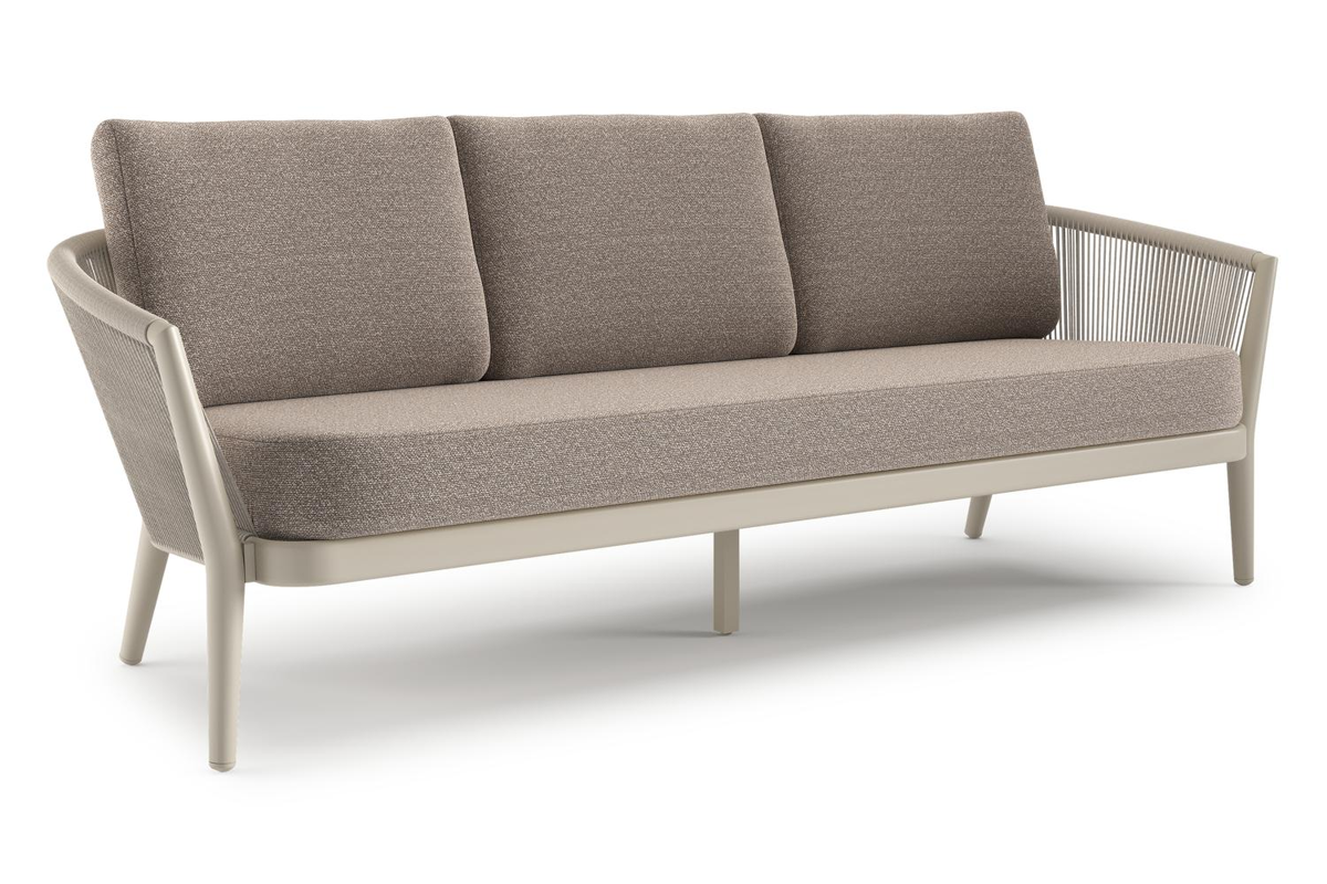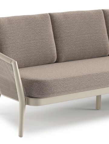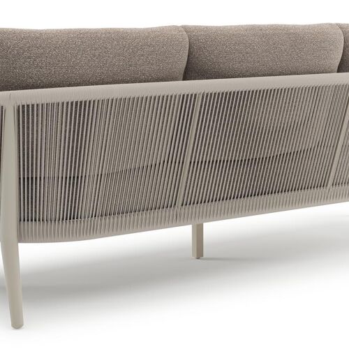 Canapé de jardin Orso en aluminium beige en corde ronde tissée verticalement beige et coussins en all weather sunbrella® luxe Wander Manioc | Exterioo