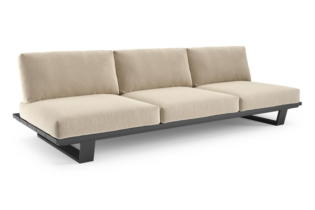 Canapé de jardin Pagino en aluminium noir et coussins en all weather cosytica althea chalk | Exterioo