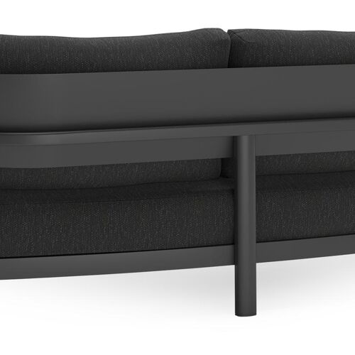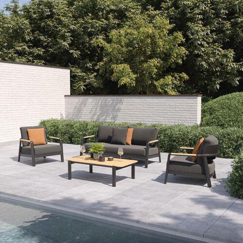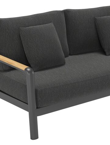 Canapé de jardin Salamanca en aluminium noir et teck avec coussins en weather+ softtouch sky black | Exterioo