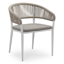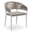 Chaise de jardin empilable Tolfa en aluminium beige et corde large plate de luxe tissée verticalement beige avec coussin en All Weather Sunbrella® Luxe Lopi Pepper | Exterioo