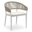 Chaise de jardin empilable Tolfa en aluminium beige et corde large plate de luxe tissée verticalement beige avec coussin en All Weather Cosytica Althea Off White | Exterioo