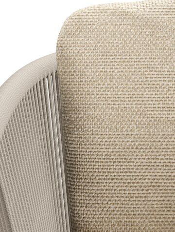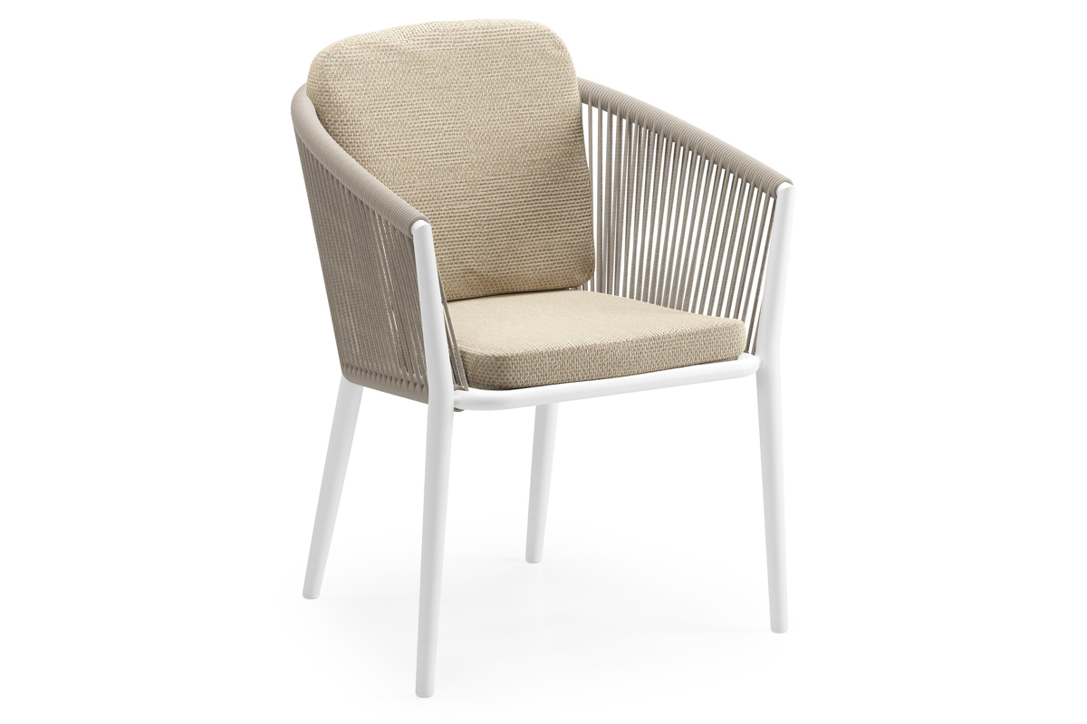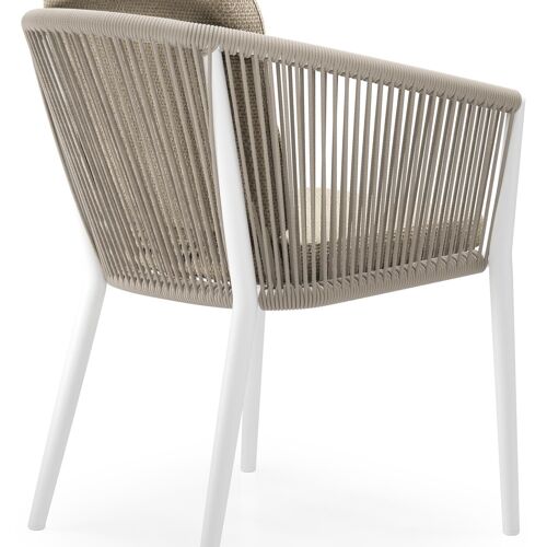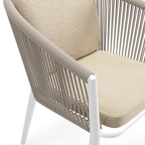 Chaise de jardin Orso en aluminium blanc et corde ronde tissée verticalement beige avec coussin luxe en All Weather Cosytica Althea Camel | Exterioo