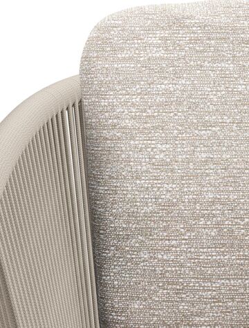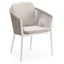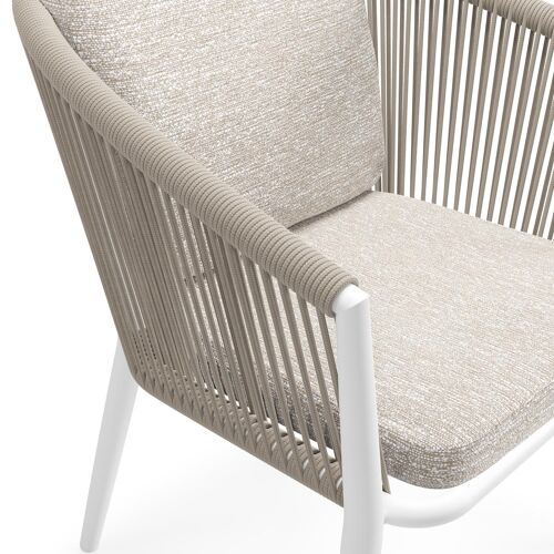 Chaise de jardin Orso en aluminium blanc et corde ronde tissée verticalement beige avec coussin luxe en All Weather Sunbrella® Luxe Tundra Sand | Exterioo