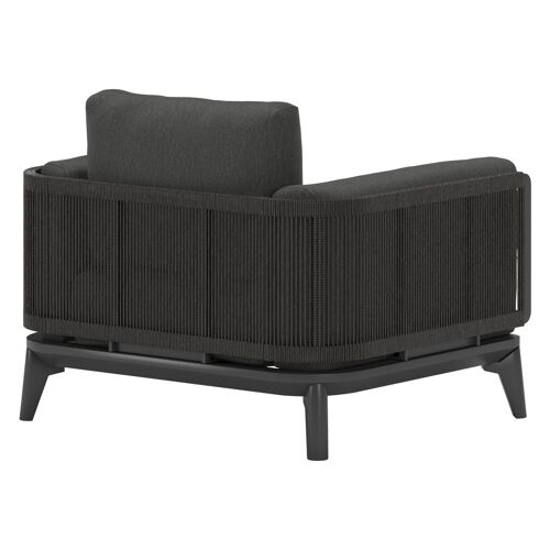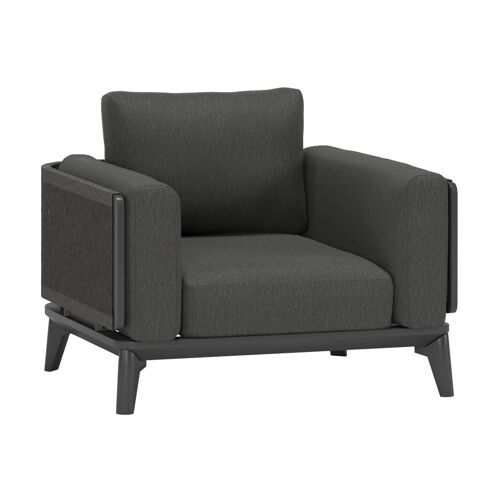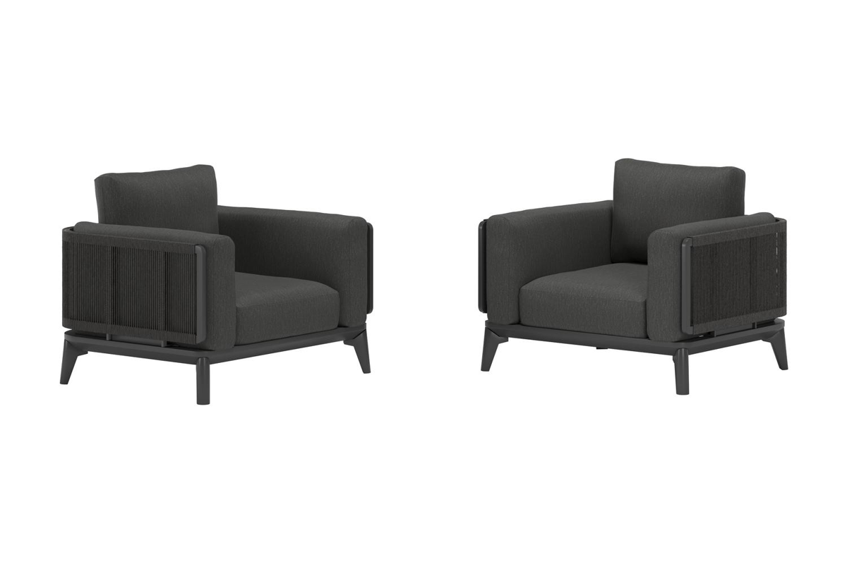 Set van 2 Mosa loungestoelen 2 x 1-zit in zwart aluminium en zwart gedraaide ronde wicker met sky black weather+ softtouch kussen | Exterioo