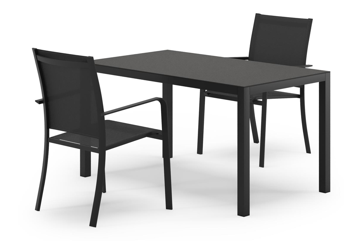 Ensemble de jardin Feltro en aluminium noir et sintered stone Notte minerale avec 2 chaises de jardin Calobra | Exterioo