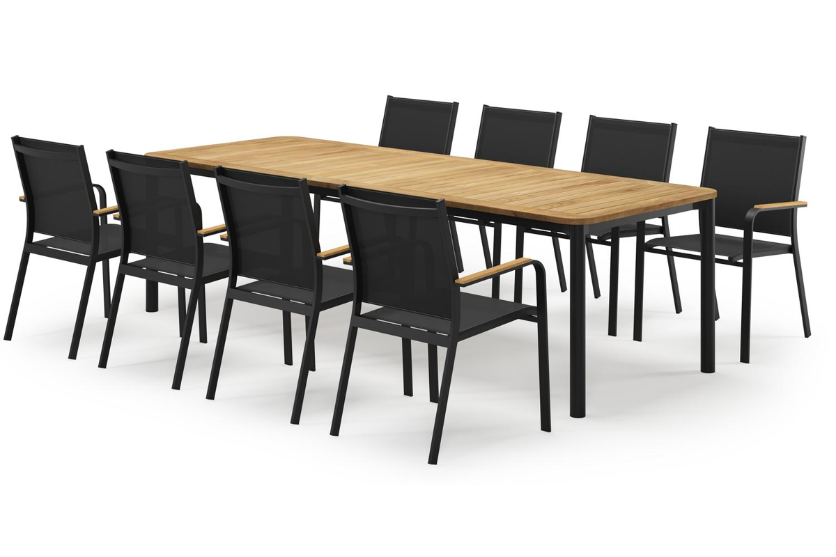 La chaise Amalfi est une chaise élégante aux accoudoirs arrondis et a un style naturel donné par ses accoudoirs en teck. La chaise Amalfi a un piètement en aluminium inoxydable. L’assise et le dossier sont en textilène solide, une matière élégante et facile d’entretien. Disponible dans différentes couleurs. La chaise est empilable et est donc facile à ranger.