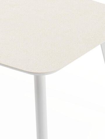 L’armature de la table est en aluminium inoxydable, un matériau robuste mais léger, qui est facile à déplacer. La surface présente une finition lisse, de sorte qu’elle n’attire pas la saleté et est facile à entretenir. Le revêtement poudré garantit la résistance aux UV et aux intempéries de votre meuble.