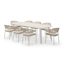 L'ensemble de jardin Mosa est facilement reconnaissable à son plateau rectangulaire arrondi et à ses pieds biseautés vers l'extérieur. La table a un aspect moderne avec une touche d'élégance.