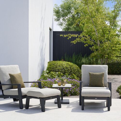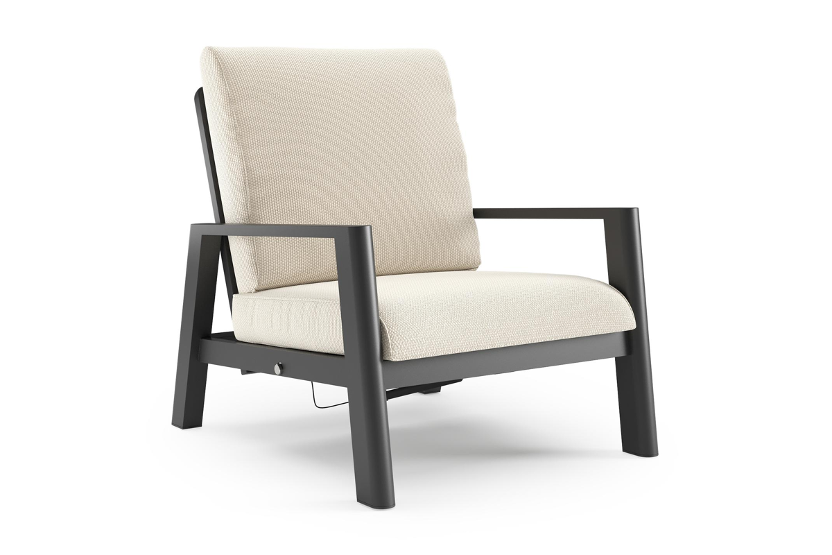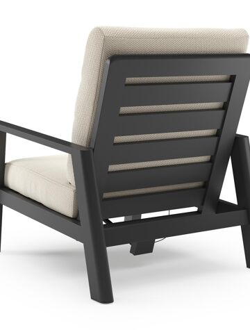Fauteuil de jardin Cirello en aluminium noir et coussins en all weather cosytica althea off white | Exterioo