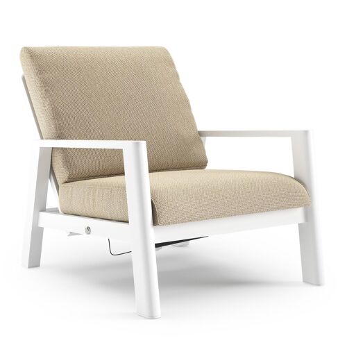 Fauteuil de jardin Cirello en aluminium blanc et coussins en all weather cosytica althea camel | Exterioo