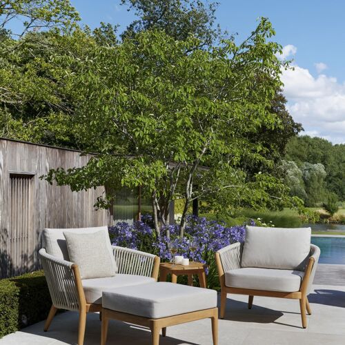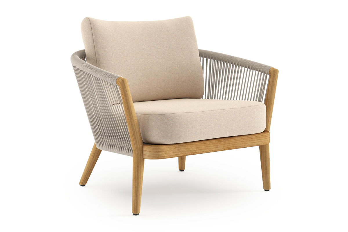 Fauteuil de jardin Orso en tecken corde ronde tissée verticalement beige et coussins en all weather sunbrella® luxe Heritage Papyrus | Exterioo
