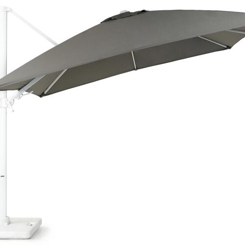 Avola zweefparasol met tiltfunctie in wit aluminium met grijs all weather sunbrella® premium parasoldoek - L1: 300 x L2: 300 cm (met voet) | Exterioo