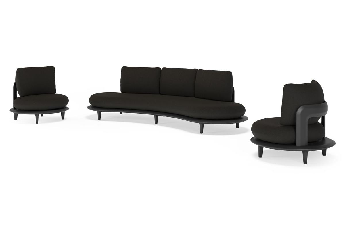 Salon de jardin Bomero en aluminium noir et coussins en all weather sunbrella® luxe heritage char | Exterioo