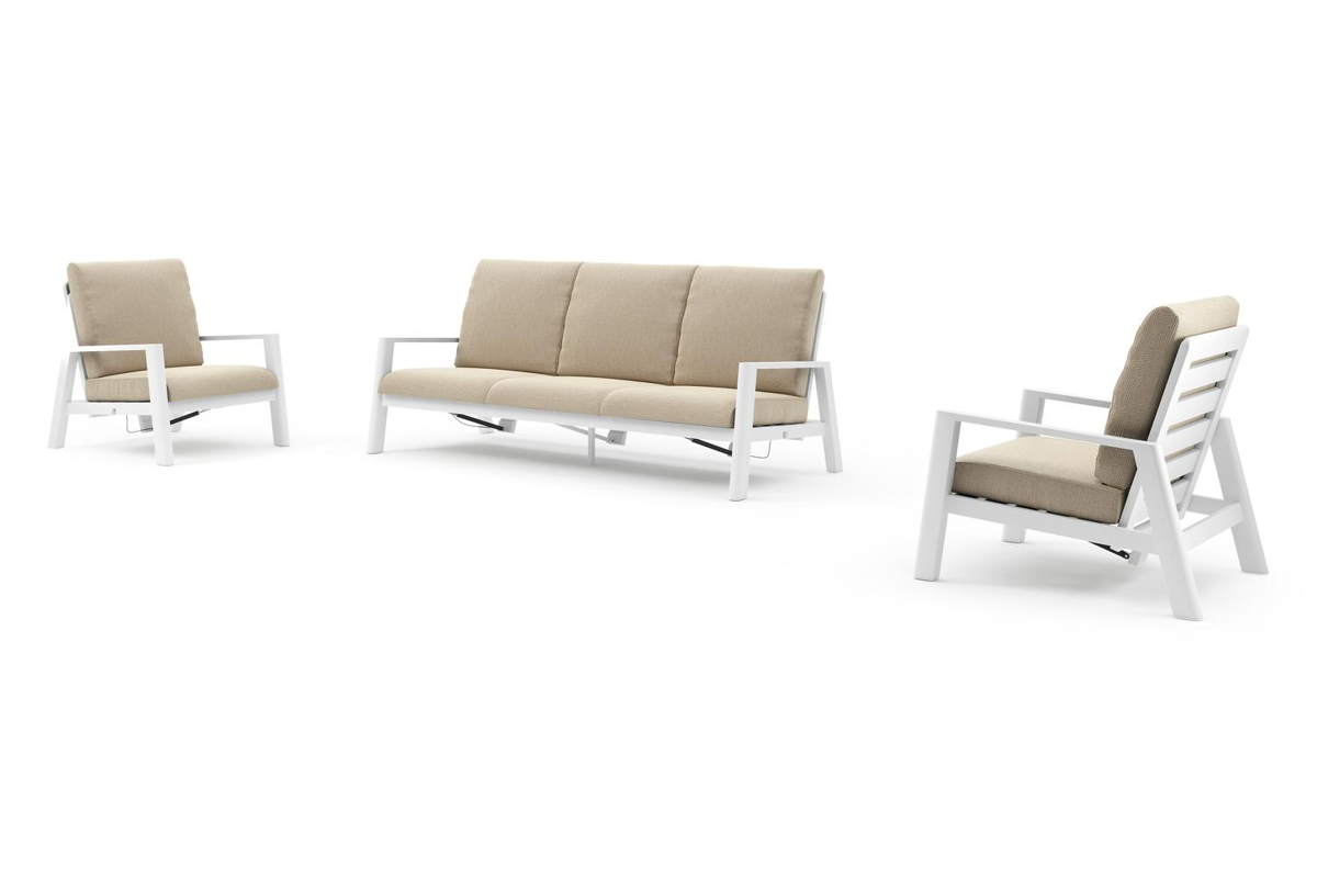 Salon de jardin Cirello en aluminium blanc et coussins en all weather cosytica althea camel | Exterioo
