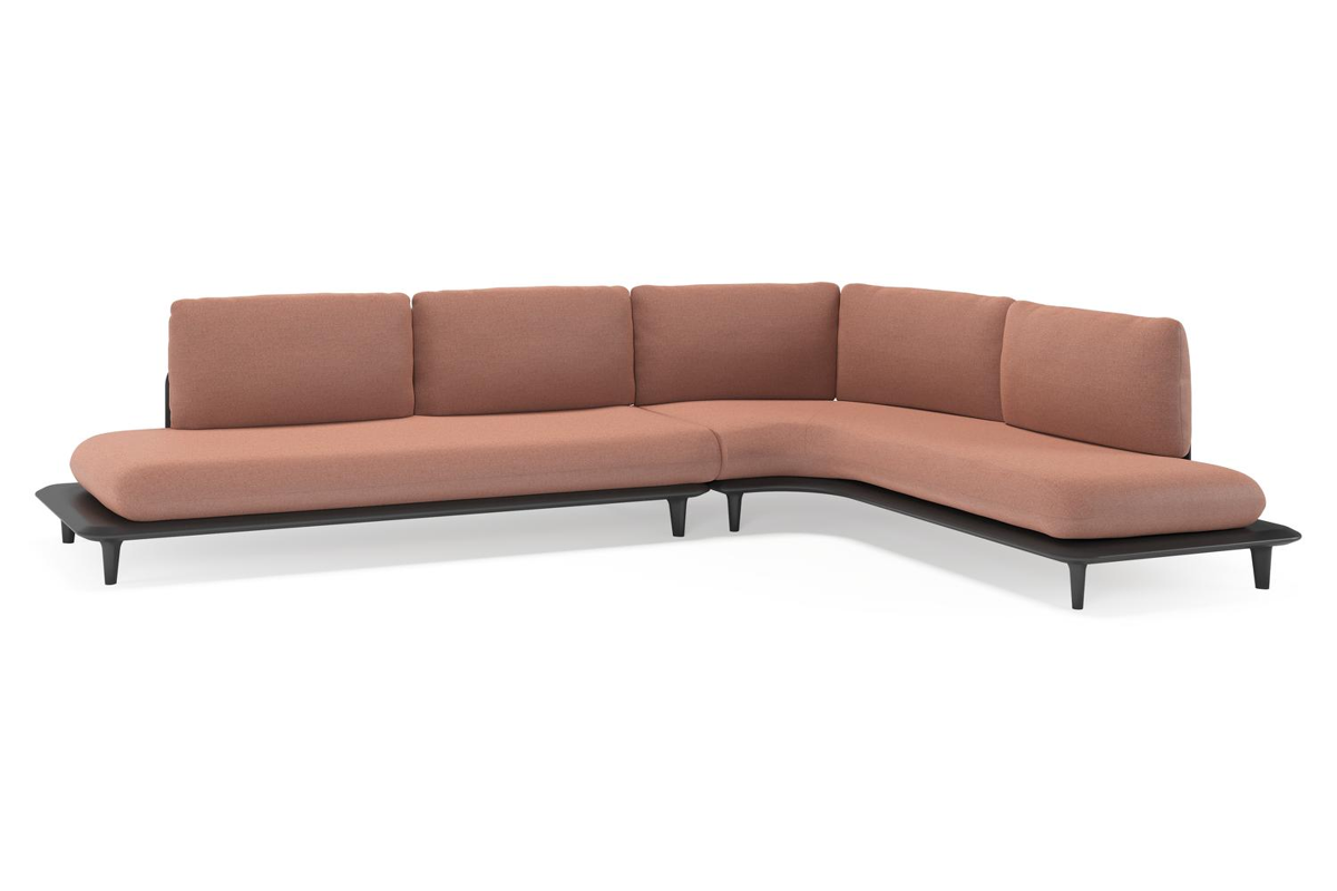 Salon de jardin d'angle Bomero en aluminium noir et coussins en all weather sunbrella® luxe savane rust | Exterioo