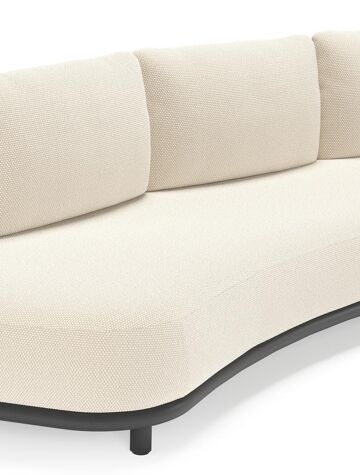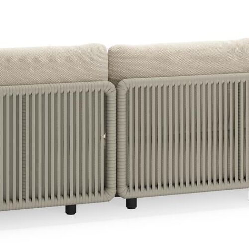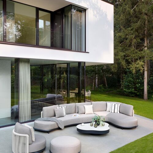 Salon de jardin d'angle Lomano en aluminium noir et corde luxe plate tissée verticalement beige et coussins en all weather cosytica Althea Off White | Exterioo