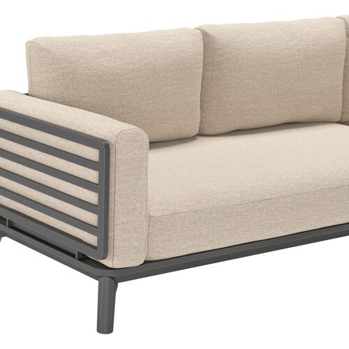 Le salon de jardin d'angle Mosa est un canapé d'intérieur pour L'extérieur. c'est un salon de jardin élégant, avec une armature qui L'entoure complètement. Les accoudoirs sont également pourvus d'un coussin, offrant un soutien supplémentaire. Le salon de jardin présente en outre un angle large, créant une place supplémentaire.