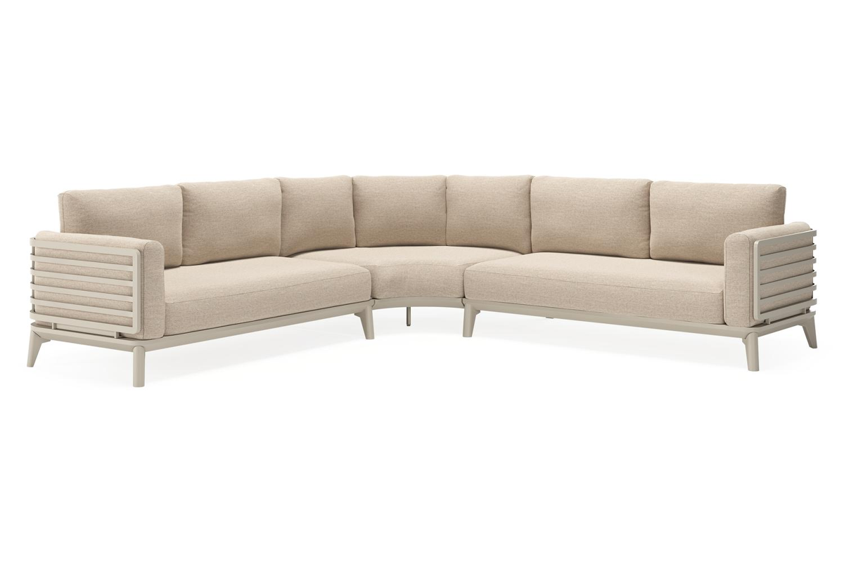 Salon de jardin d'angle Mosa en aluminium beige avec coussins en weather+ softtouch rustic | Exterioo