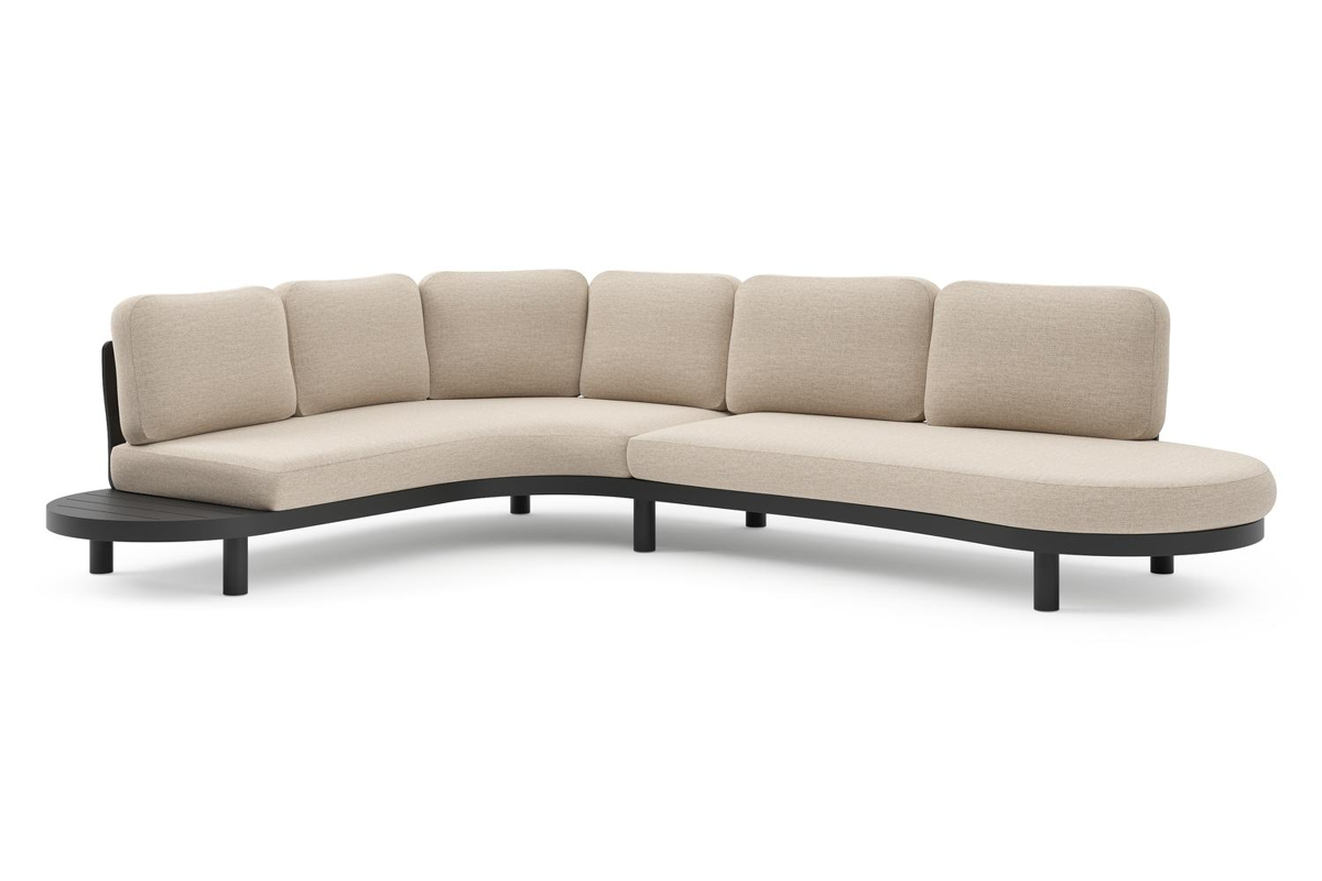 Salon de jardin d'angle Palma en aluminium noir et coussins en weather+ softtouch rustic | Exterioo