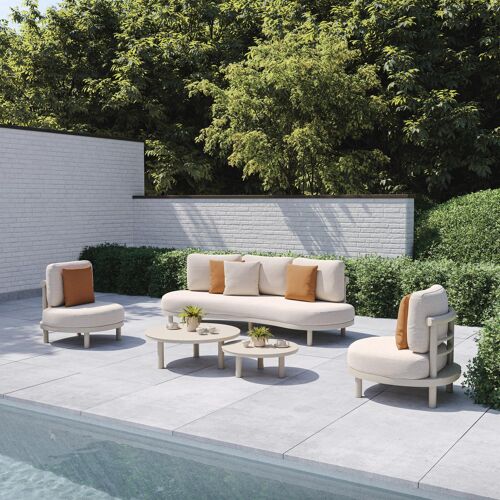 Salon de jardin Lindo en aluminium beige avec coussins en weather+ softtouch rustic | Exterioo