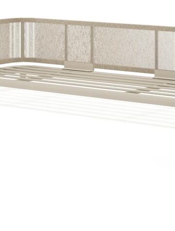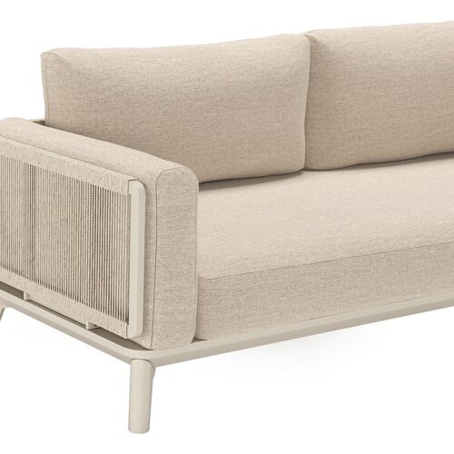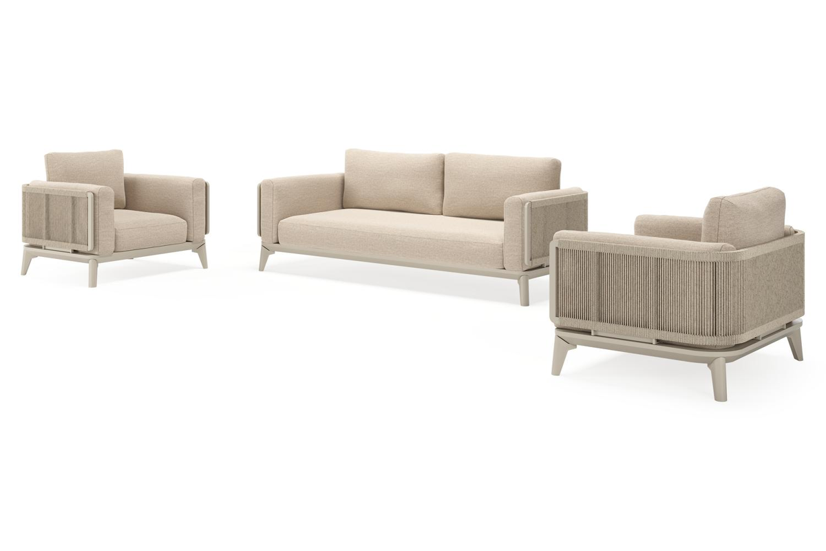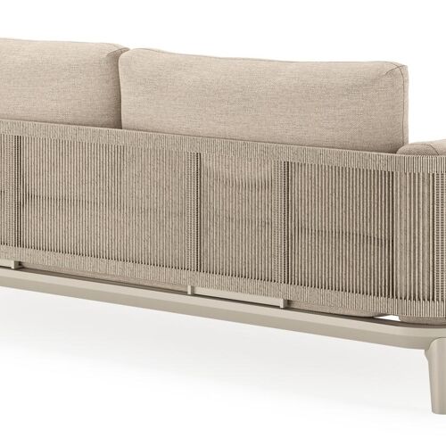 Salon de jardin Mosa en aluminium beige et résine tressée torsadée beige et coussins en weather+ softtouch rustic | Exterioo