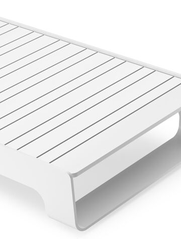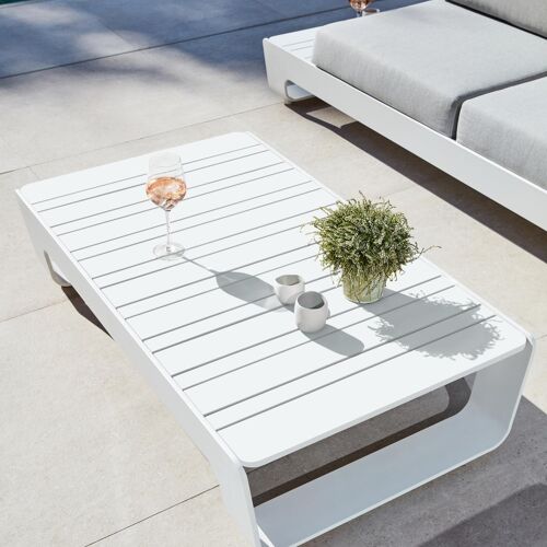 La table basse Atessa est fabriquée en aluminium inoxydable. La table est unique de par son piètement en U fluide et le jeu de lignes dans le plateau de table. Cette table basse sera le complément parfait à votre salon de jardin.