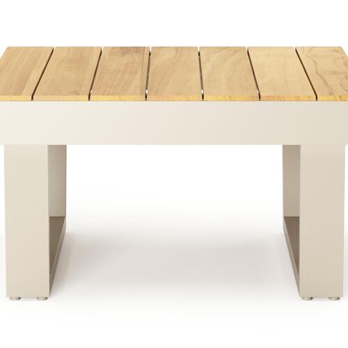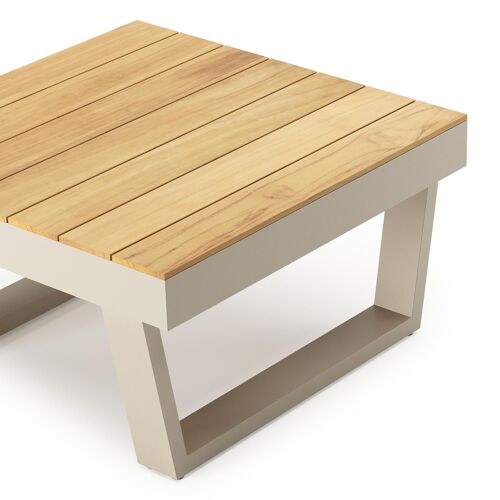 Table basse Modica en beige aluminium et teck - L g.72 x Lrg. 72 x Haut. 38 cm | Exterioo