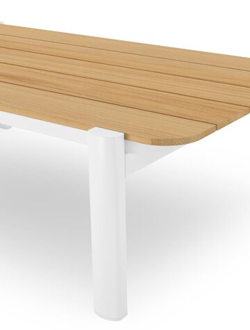 La table basse Salamanca allie de faà§on équilibrée design contemporain et éléments naturels. Son empiètement en aluminium semble porter le plateau de table. Réalisé en teck, ce dernier apporte à L'ensemble une touche naturelle. grâce à ses angles arrondis, la table basse est confortable et sà»re d'emploi.