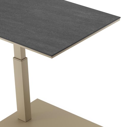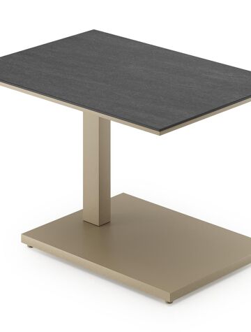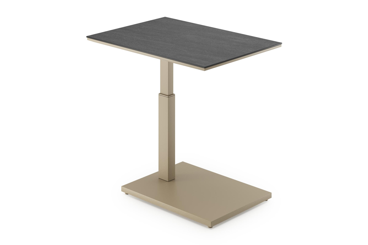 Table d'appoint pop-up Cirello rectangulaire en aluminium beige et céramique pleine Basalt Black - Lg. 69.5 x Lrg. 50 x Haut. 66 cm | Exterioo