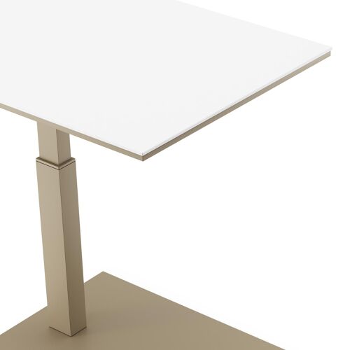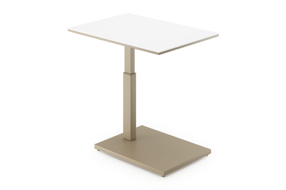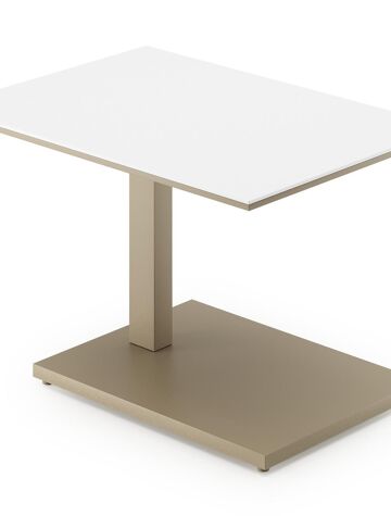 Table d'appoint pop-up Cirello rectangulaire en aluminium beige et céramique pleine Arctic White - Lg. 69.5 x Lrg. 50 x Haut. 66 cm | Exterioo