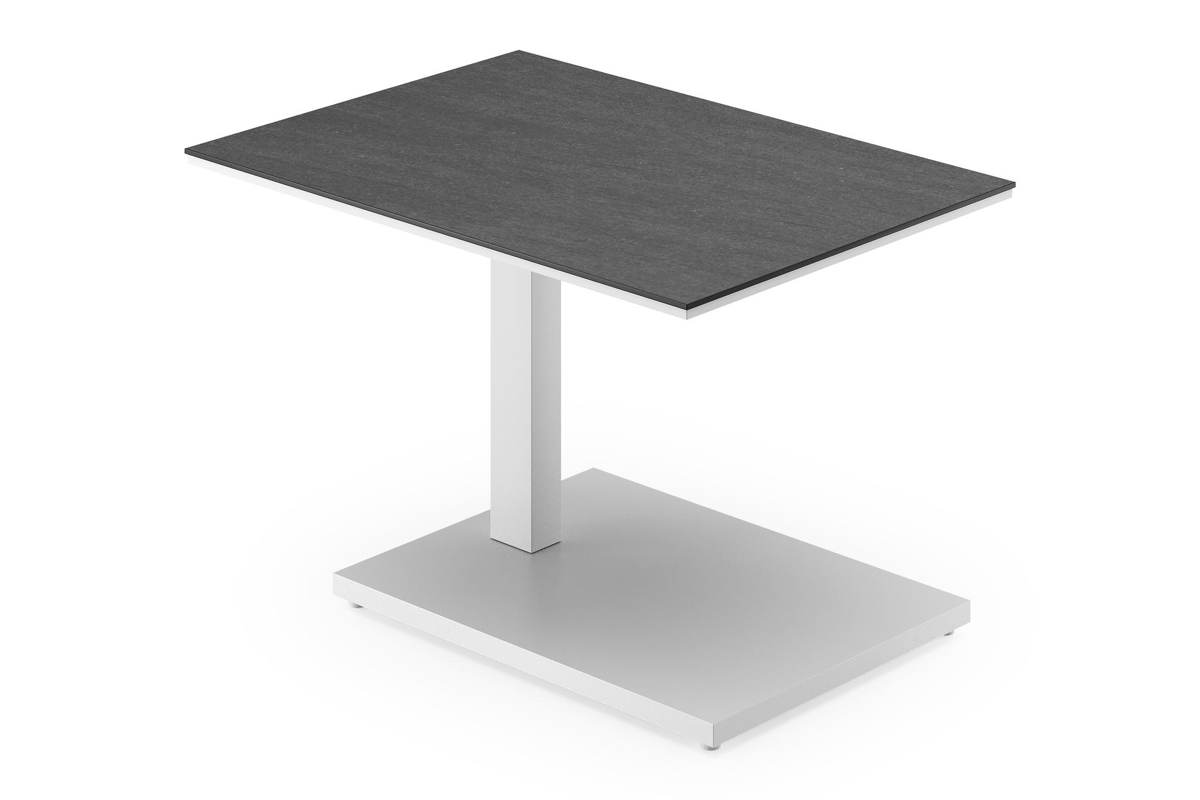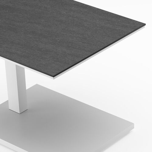 Table d'appoint pop-up Cirello rectangulaire en aluminium blanc et céramique pleine Basalt Black - Lg. 70 x Lrg. 50 x Haut. 44 cm | Exterioo
