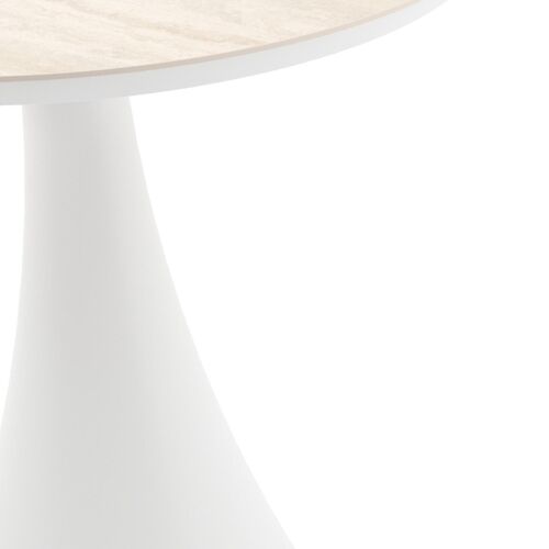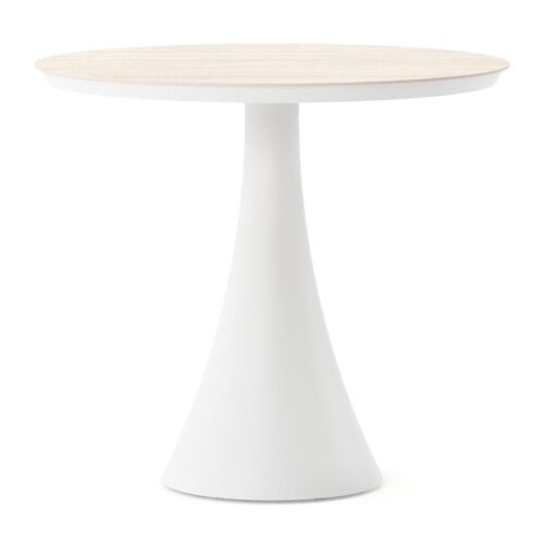 Table de jardin Fano ronde en aluminium blanc et céramique pleine Travertino Bianco - Diam. 85 x Haut. 74 cm | Exterioo
