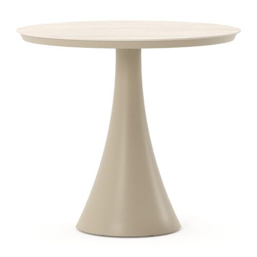 Table de jardin Fano ronde en aluminium beige et céramique pleine Travertino Bianco - Diam. 85 x Haut. 74 cm | Exterioo