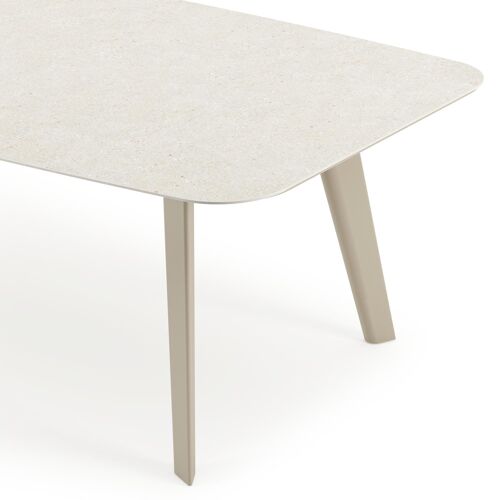 Table de jardin Lacirma forme de bateau en aluminium beige et céramique pleine Shilin Lg. 255 x Lrg. 115 x Haut. 74 cm | Exterioo