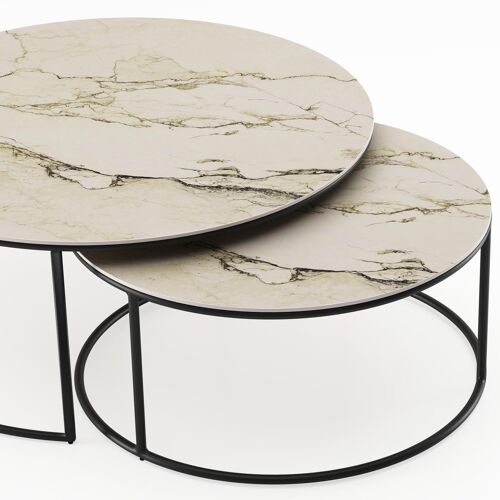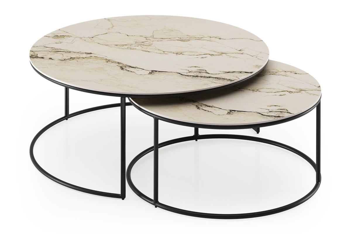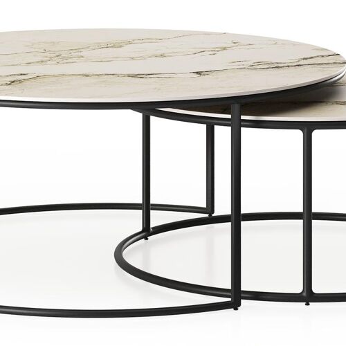 Fano loungetafels in zwart aluminium en colorado dunes volkeramiek - Dia. 85/65 x H 35/30 cm | Exterioo