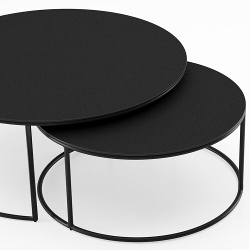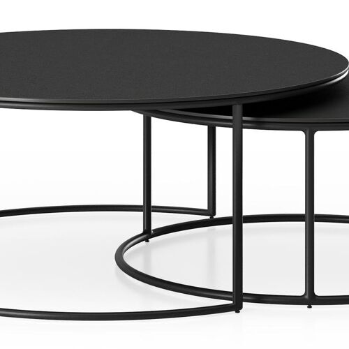Tables basse Fano en aluminium noir et céramique pleine nero black - Dia. 85/65 X H 35/30 cm | Exterioo
