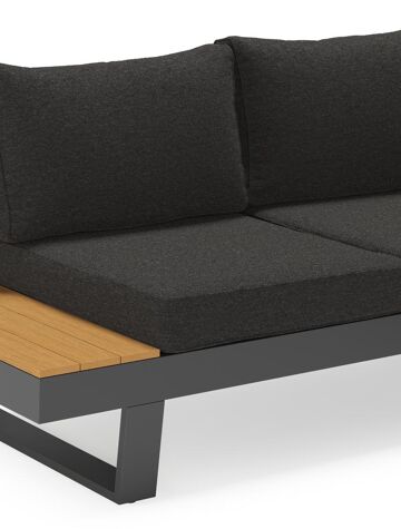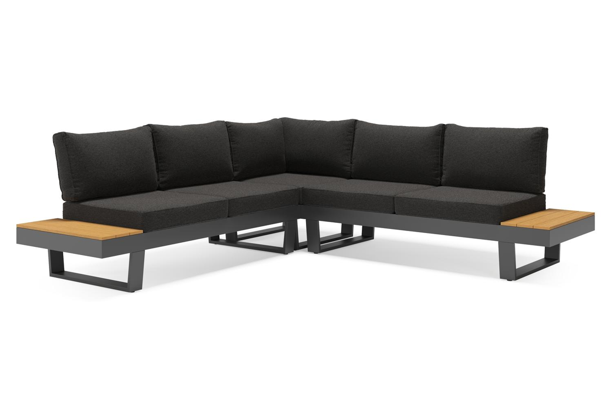 Alora loungehoek in zwart aluminium en polywood met zwart weather+ softtouch kussens | Exterioo