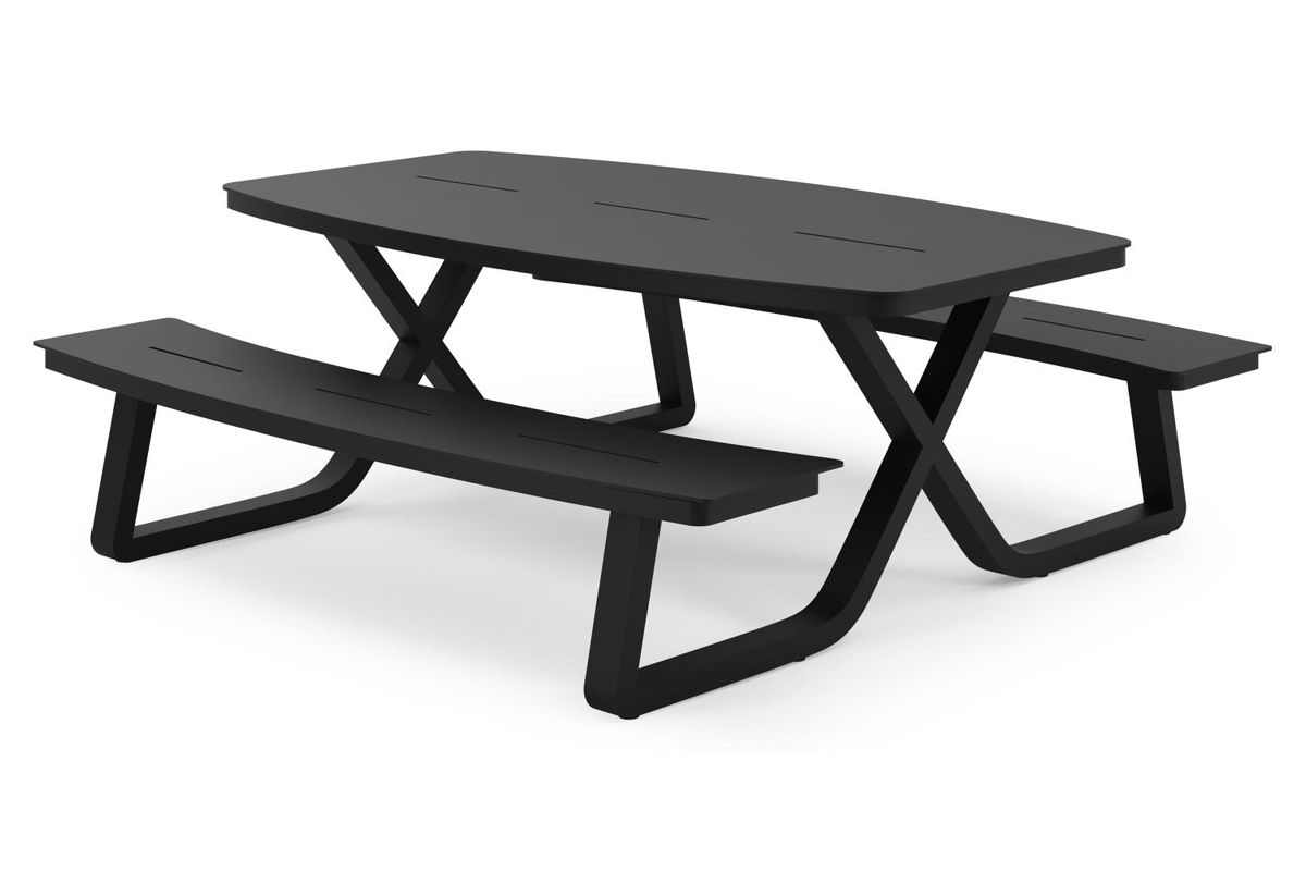 Alora picknicktafel rechthoekig in zwart aluminium - L 200 x B 214 x H 74 cm | Exterioo