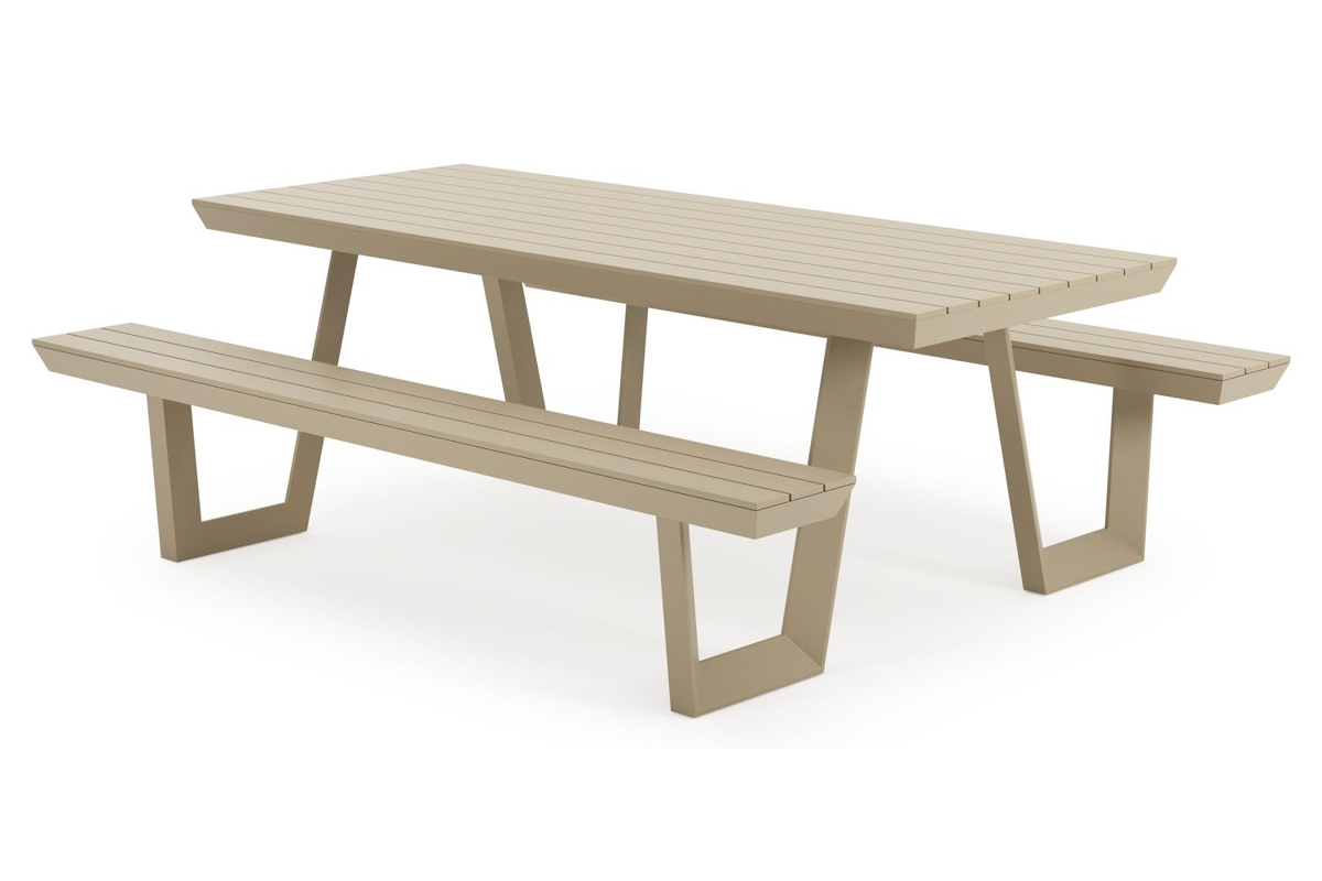Altura picknicktafel rond in beige aluminium - L 220 x B 174 x H 74.5 cm | Exterioo