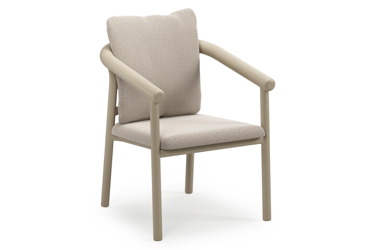 Amico stapelbare tuinstoel in beige aluminium met stoelkussen in All Weather Sunbrella® Luxe Lopi Fossil | Exterioo